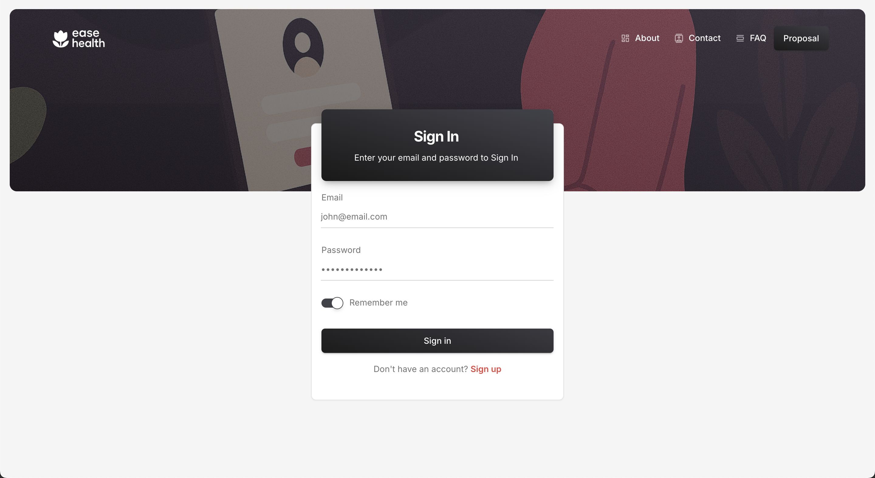 Explore the demo wireframe pages designed for the Ease Health platform experience.